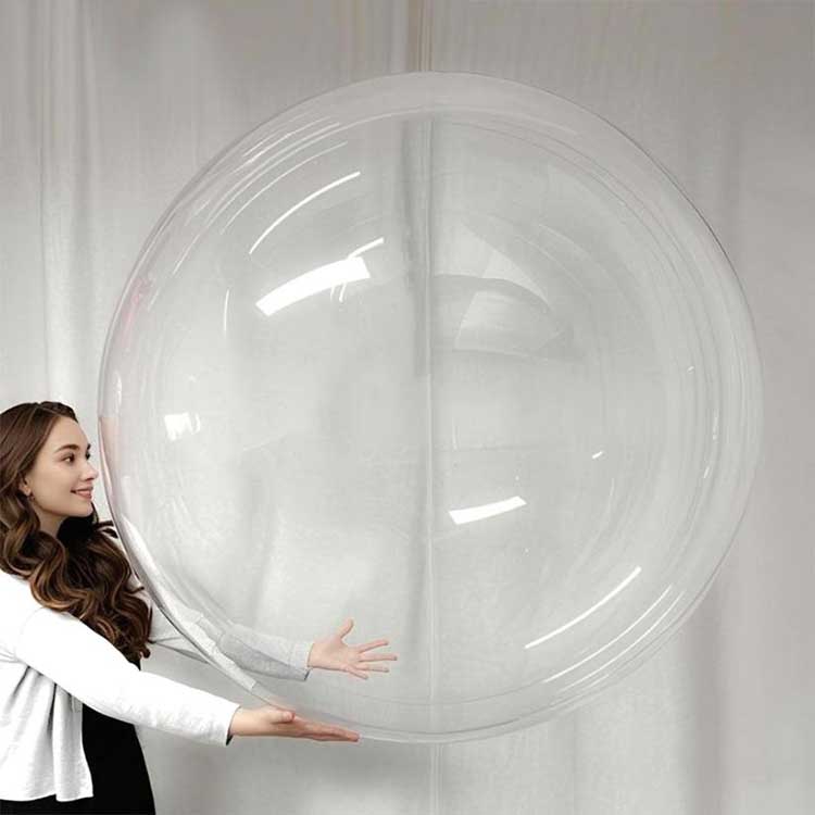 48-инчовите кръгли прозрачни балони Bobo могат да се адаптират към различни среди. Когато са сдвоени с 10 LED светлинни струни и напълнени с хелий, те могат да създадат светлинен ефект. Тези балони могат да се използват за търговски изложби за постигане на прецизен маркетинг; те могат да се използват и за запълване на детски партита с цветна пяна или листенца от пера. на скорошна сватба бяха използвани 100 направени по поръчка 48-инчови кръгли прозрачни балони с мехурчета, които спечелиха висока оценка.