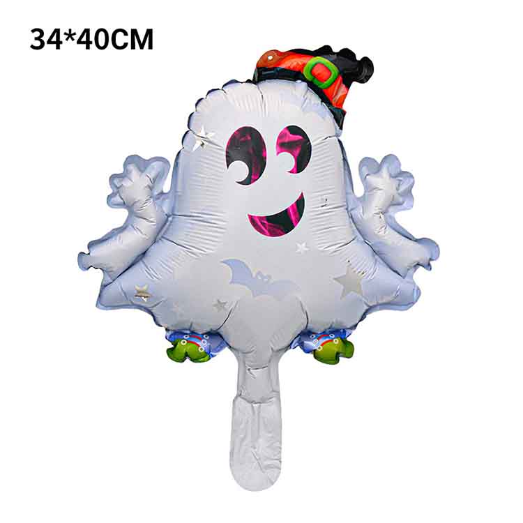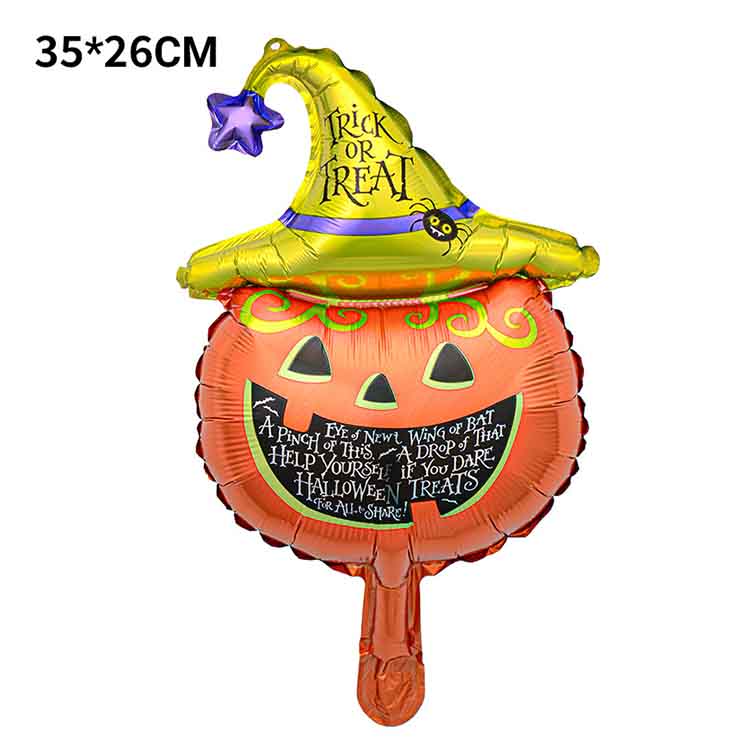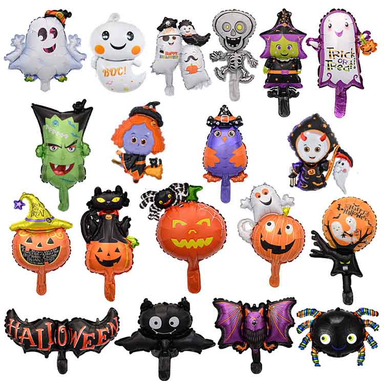 Този алуминиев филмов балон обединява класически елементи на Хелоуин като черепи, тиквени фенери, прилепи, паяци и др. Карикатурната форма е сладка и малко странна. Размерът на мини може лесно да създаде силна празнична атмосфера, независимо дали е окачена самостоятелно или поставена в комбинация.