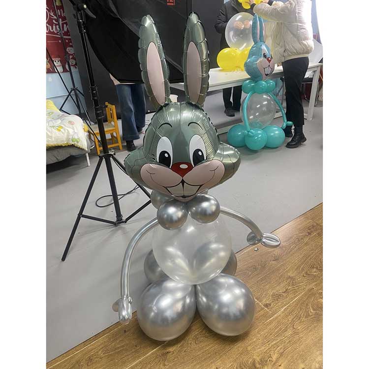 Балон от фолио Бъгс Бъни, използван за дейности на тема Великден. Дългите уши, закачливата усмивка и живите очи на Бъгс Бъни, заедно с техните живи и богати цветове, ще привлекат вниманието на децата и ще подсилят празничната атмосфера. Комплект продукти от фолиен балон Bugs Bunny. Комбинацията от фолиеви балони и латексови балони създава 3D ефект, разпалвайки радостна атмосфера. Балонът Bugs Bunny се предлага в четири цвята: розов, син, сив и зелен. Всеки фолиен балон е съчетан с латексов балон в същата цветова схема. Продуктите са много издръжливи. Фолиевите балони използват удебелен процес на запечатване, което им позволява да останат надути в продължение на 2-3 седмици. Латексовите балони също са много дебели; 12-инчов балон използва 2,8 g латекс и може да остане надут за около 4 седмици. Всички използвани материали са безопасни за деца, без мирис и без вредни вещества, което ги прави безопасни за работа от деца. Фолиевият балон Bugs Bunny не е само за Великден; те могат да се използват и като украса за маса или реквизит за снимки за детски рождени дни, създавайки забавно и игриво пространство. Могат да се подарят и като подарък за добре дошли за 100-дневния празник на бебето. Възможно е персонализиране; . Newshine като производител на балони с дългогодишен опит в производството на балони. ние можем да отговорим на всяка ваша творческа нужда.