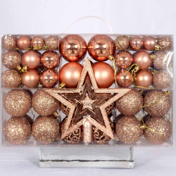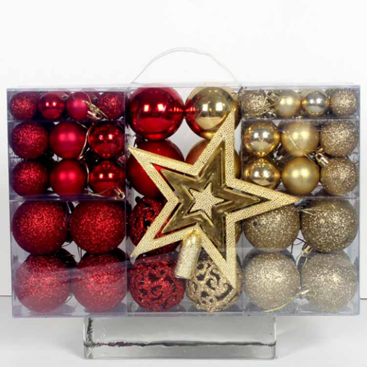 Декоративните топки за коледно дърво са съставени от 101 различни декоративни аксесоара. Съдържа декоративни топки с различни размери и цветове. Може да ви помогне напълно да стимулирате ентусиазма на децата, да развиете въображението им и да им позволите да създават декорации „направи си сам“, като по този начин позволяват на семейството да прекара незабравима Коледа. Аксесоарите са изработени от дебели материали, които не се повреждат лесно, а декоративните топки имат както матова, така и гладка повърхност. Въпреки че използваният материал е дебел, той не е тежък и е сравнително лек, така че Коледната елха няма да се огъне и формата й няма да се наруши. Това прави всичко по-красиво и по-просто.