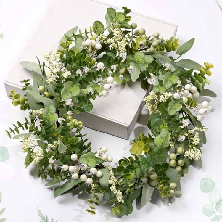 Декоративният гирлянд включва листа като основен елемент, с различни стилове, инкрустирани с различни цветя като декорации, а цялостната форма е кръгла. Вените на листата са ясно видими, създавайки реалистичен ефект. Той може да издържи на ултравиолетова радиация и няма да избледнее. Това е най-добрият избор за декориране на предната част на къщата или полицата над камината по време на Коледа.