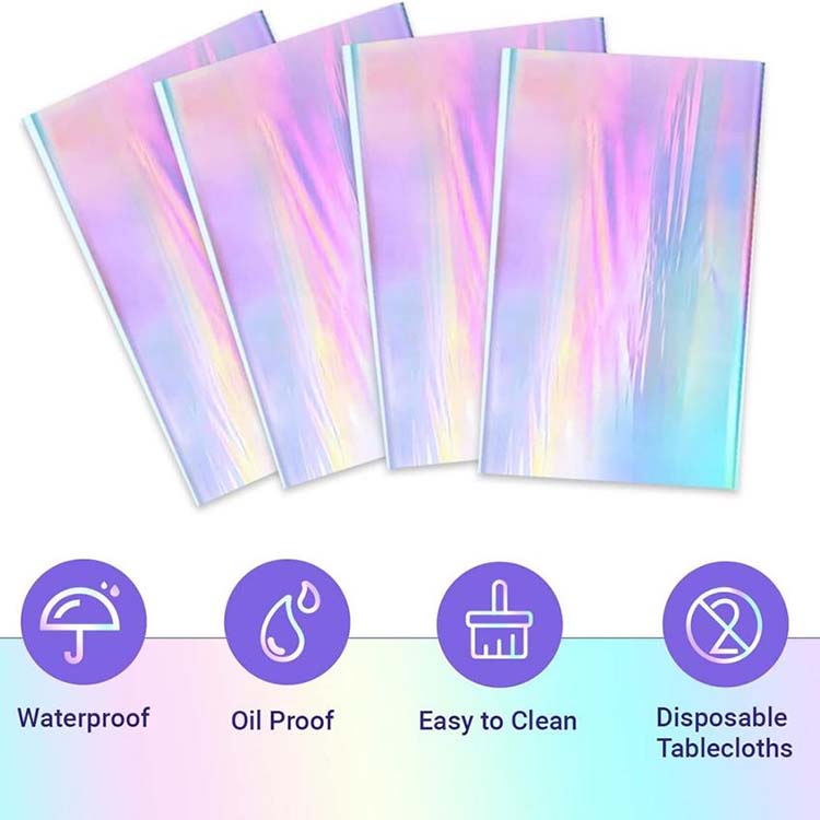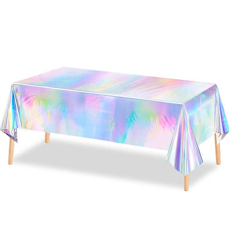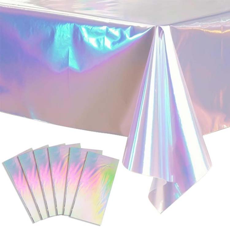 ЛазерПодставка за еднократна употреба: Чрез многослойна оптична филмова композитна технология се постига 360 ° холографски отразяващ ефект. Най-продаваната "Rainbow Laser Casteloth" приема стандартен размер от 54x108 инча, което може да създаде усещане за светлина и сенчеста поток в партийни сцени, а потребителската оценка е 4,7 звезди (от 5 звезди).