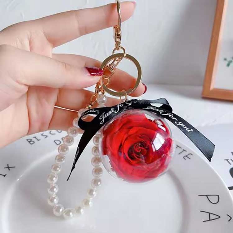 Ключодържателят Eternal Flower Keychain на New Shine се отличава с кръгла декорация от акрилна топка с висока прозрачност, която защитава по-добре консервираното цвете и го прави по-лесно за съхранение. Основното му тяло е точно 5 см в диаметър и тежи приблизително 32,5 грама. Той е с размер на длан, не е обемист, когато е окачен на ключове, и не изглежда неуместно върху чанта. Предлагат се множество цветове.