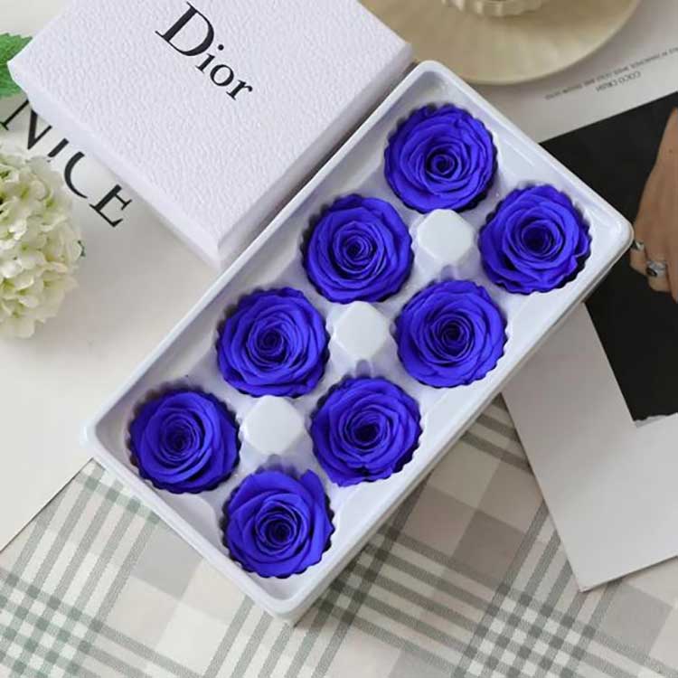 Розите се класифицират на три нива: A, B и C. Розите от клас A са по-големи и по-пълни. Нашата подаръчна кутия за рози Everlasting Flower с 8 цветя е направена от рози клас А. Размерите на подаръчната кутия са 24см*13см*8см. Всяка кутия тежи около 150гр. Срок на годност на консервирани цветя: 3-5 години при нормални условия на съхранение, което е по-полезно за вашите продажби.