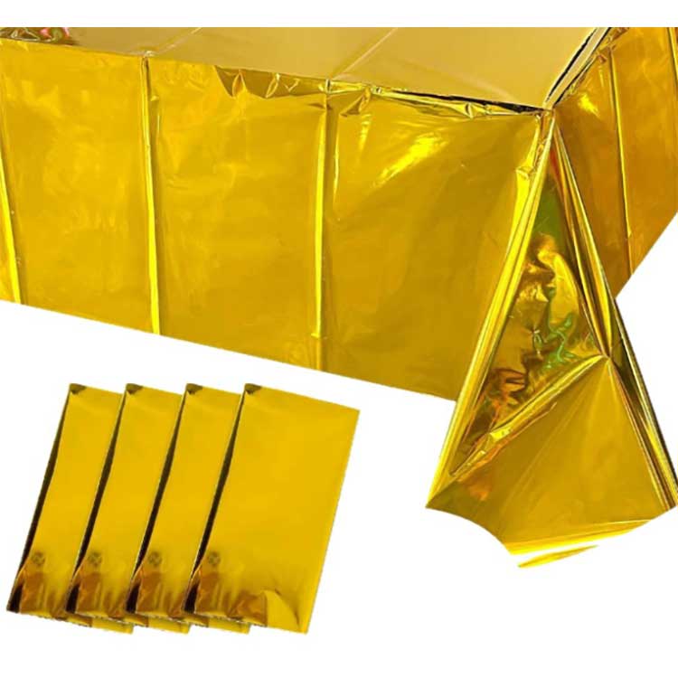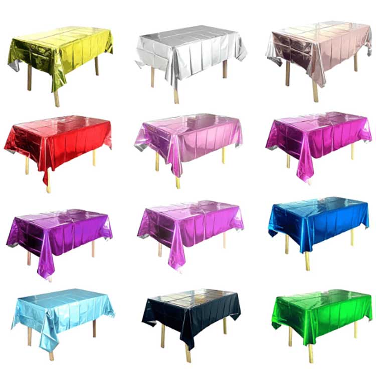 Фолиото Покривало за маса се използва за сервиране на маса при различни тържества. Може да предпази повърхността на масата от петна, драскотини или повреди, а цветовете и шарките също могат да донесат декоративни ефекти. Изработен е от специално PET фолио с алуминиево покритие. По време на производствения процес използвахме технологията за вакуумно покритие, за да гарантираме здравината, издръжливостта и ефективността против стареене на покритието на масата. Освен това, неговите молекули с висока плътност могат ефективно да предотвратят проникването на петна от супа или масло, а също така има водоустойчива функция.