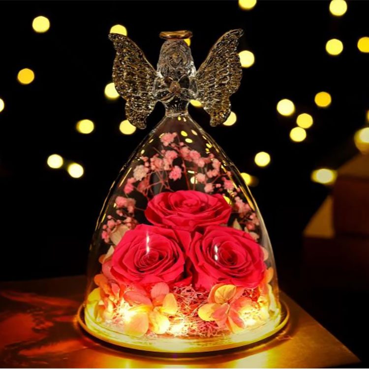 Нашият стъклен ангел със запазен подарък от цветя поддържа OEM и ODM.