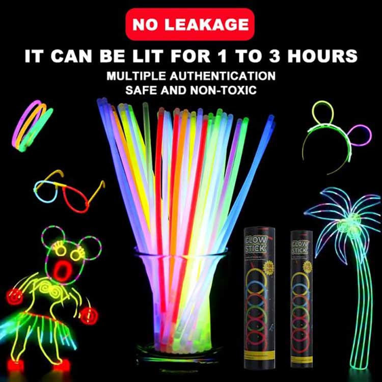 Светещият стик е надграден до по-ярък и по-привличащ вниманието цвят. Може да остане осветен от 1 до 3 часа. Флуоресцентният материал, използван във флуоресцентните пръчки, е с висока концентрация, което води до дълготрайно и силно интензивно сияние.