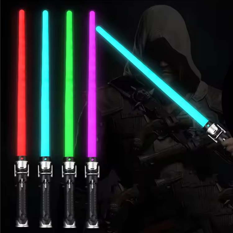 Нашият светлинен светещ лазерен меч с лесна за захващане на светеща дръжка. Освен това има LED светлинна мигаща режим. Цветът и звукът са чувствителни към движение.