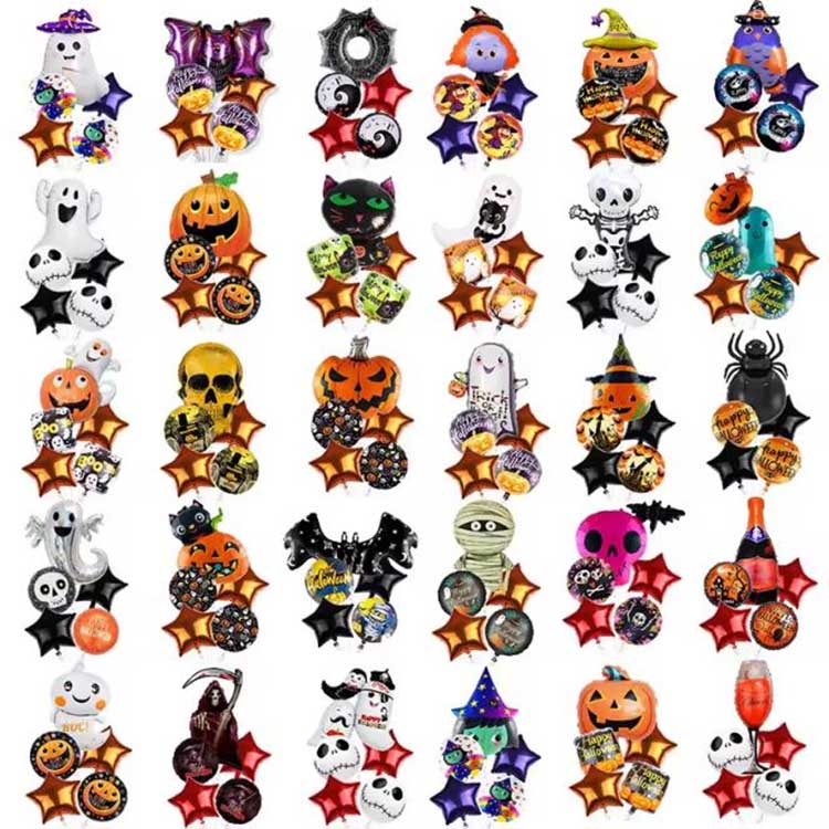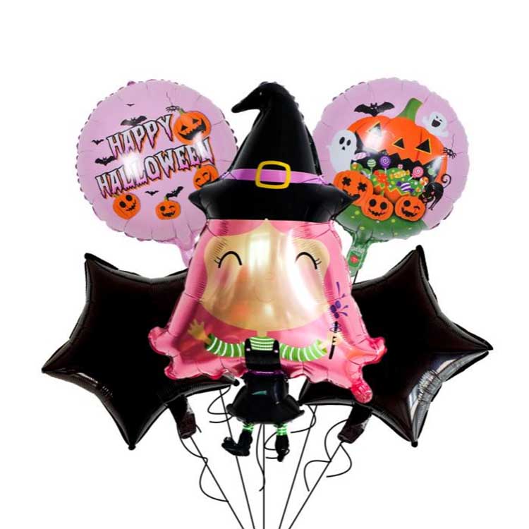 Комплектът с пет части Хелоуин е комплект с балон, специално проектиран за Хелоуин. Обикновено се състои от балони от фолио, латексни балони и други аксесоари. Тя включва общо пет типа балони! Всеки комплект разполага с модел или характер, който перфектно съвпада с темата за Хелоуин. Перфектен за декорации на Хелоуин, можете дори да напълните балоните с хелий, за да ги накарат да плават! Това наистина засилва мистериозната атмосфера на Хелоуин!
