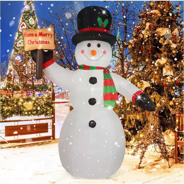Имаме надуваем коледен снежен човек в различни размери на склад, от който да избирате. Можем също да персонализираме размера и дизайна според вашите нужди. Имаме професионални дизайнери, които да създадат продукта, който желаете. След като потвърдите, можем да започнем производството. За да отговорим на нуждите на повече клиенти, нашият надуваем снежен човек има MOQ от 1 брой. Това намалява финансовата ви тежест! Приемаме и групови поръчки.