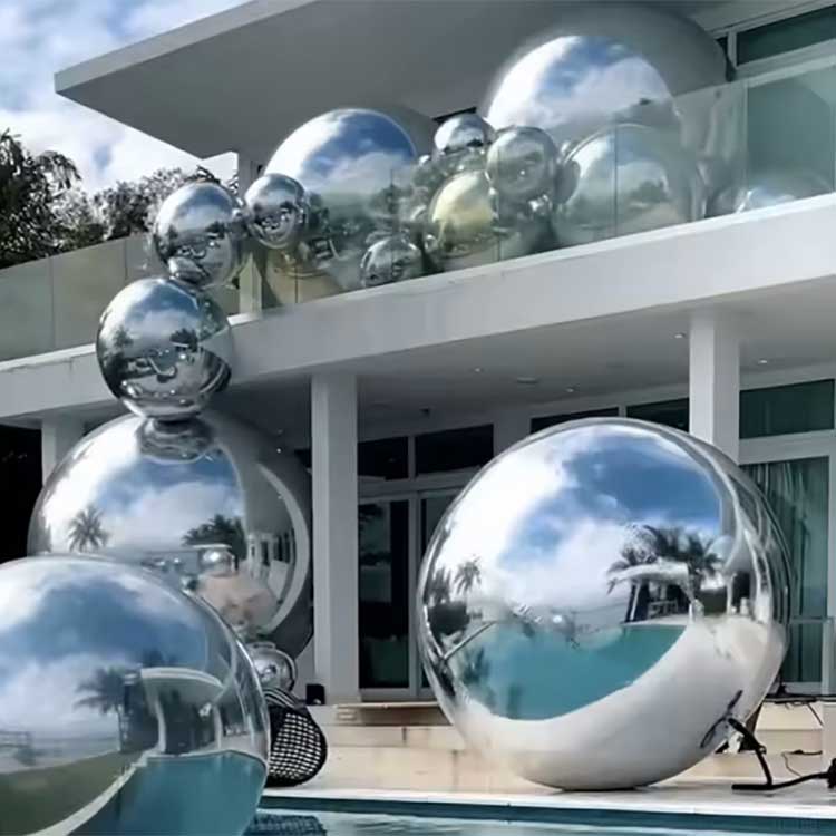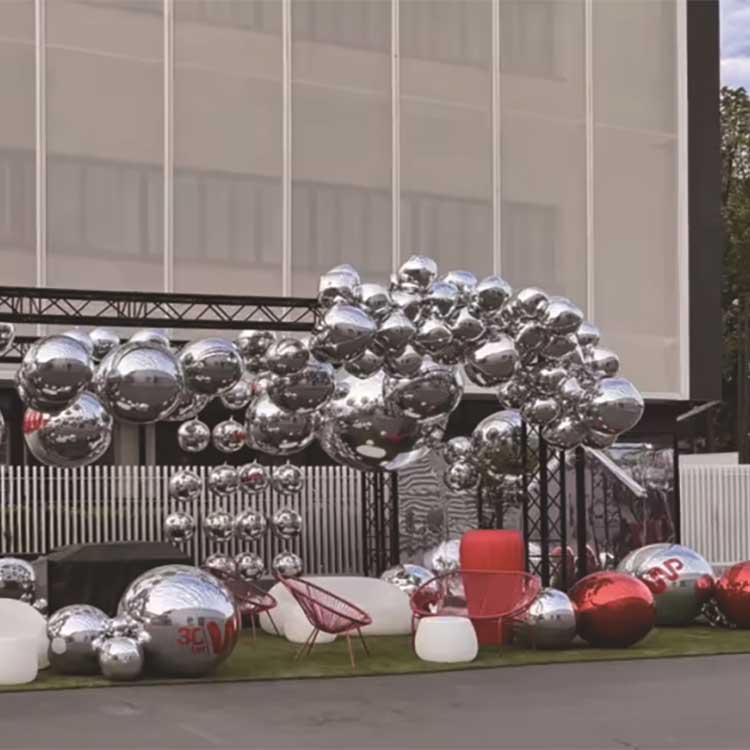 Огледалните балони са сферични, с огледална повърхност, в различни цветове и размери. Те могат да бъдат окачени във въздуха или поставени на земята. Дори топките могат да бъдат свързани чрез уникални устройства, като по този начин създават различни цялостни форми и създават атмосфера, пълна с технологични и мечтателни елементи, позволявайки на всеки участващ в дейността да се потопи в нея.