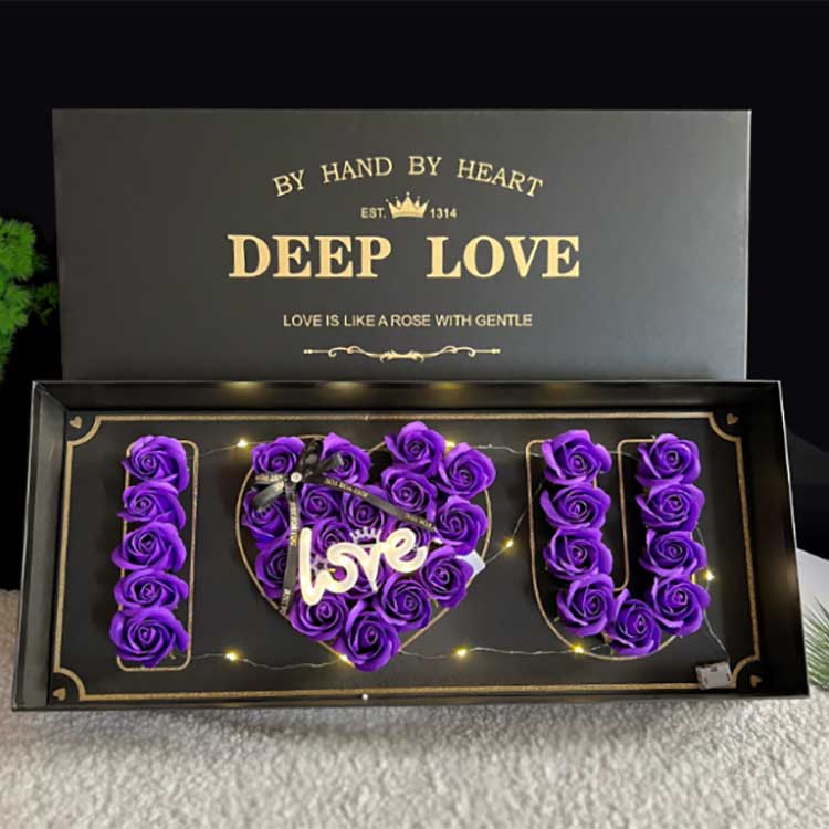 Сапунено цвете, LED светлина, надпис за любов, опаковъчна кутия |