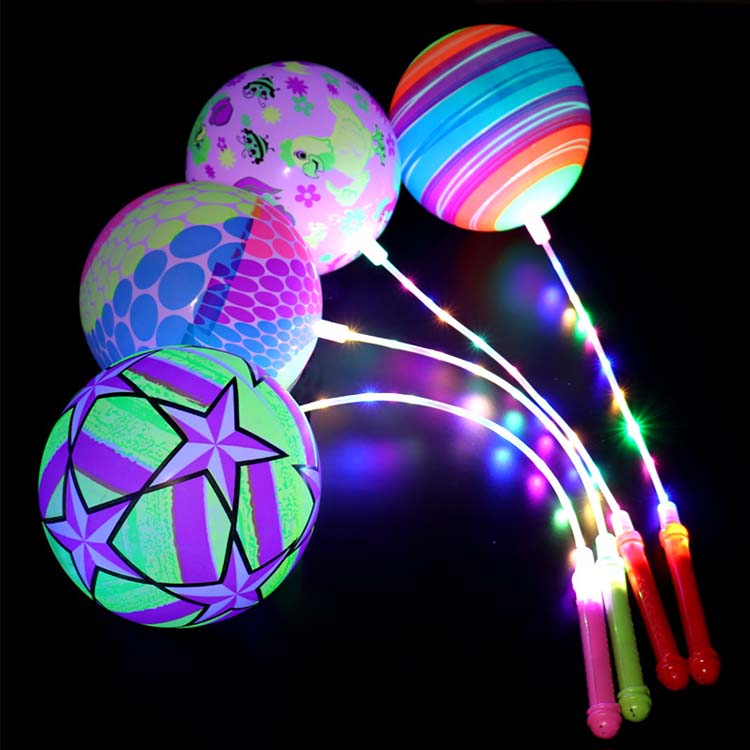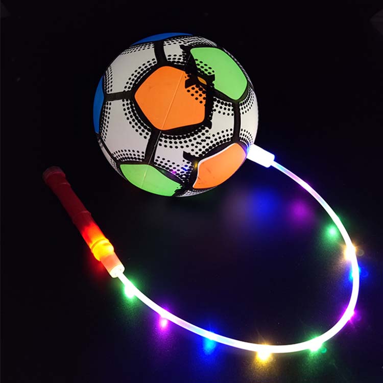 Струнните подскачащи топки с LED светлини са подскачащи топка, вързани за струна, с LED светлини, вградени вътре или на повърхността. Когато се обърнат, светодиодите излъчват цветни светлини, когато отскачате, люлеете или го задържите. Тези светлини са по -видими в тъмна среда.
